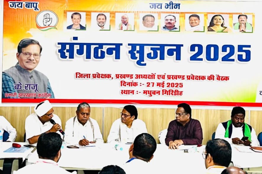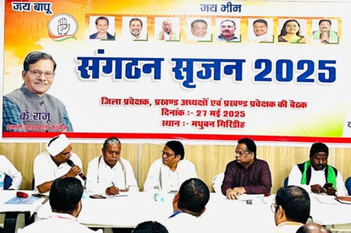 गिरिडीह : जिले के प्रसिद्ध जैन तीर्थ स्थल मधुबन में मंगलवार को जिला कांग्रेस कमेटी द्वारा संगठन सृजन 2025 का आयोजन किया गया, जिसमें प्रदेश प्रभारी के राजू, सह प्रभारी श्रीवेला प्रसाद एवं प्रदेश अध्यक्ष केशव महतो कमलेश व पार्टी के अन्य नेता शामिल हुए। बैठक की अध्यक्षता जिला अध्यक्ष धनंजय कुमार सिंह ने की।
