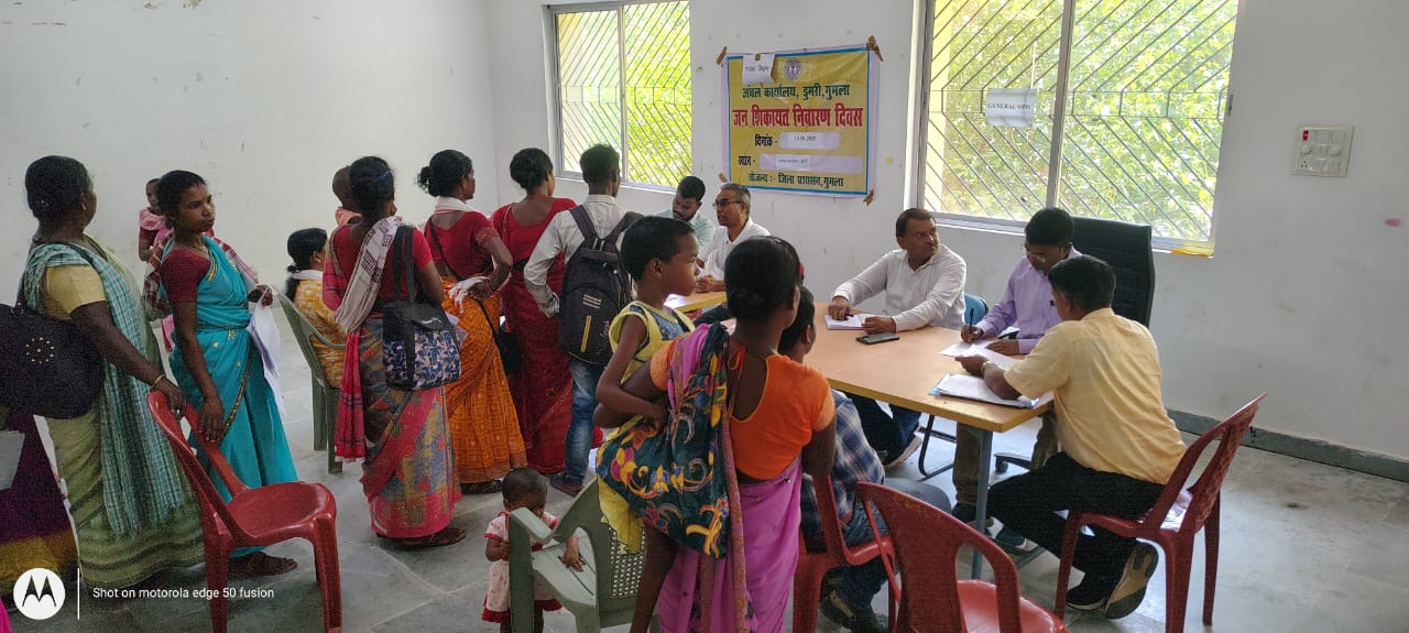 गुमला : – गुमला जिला प्रशासन के निर्देशानुसार आज डुमरी प्रखंड परिसर में जन शिकायत निवारण दिवस का आयोजन किया गया। इस अवसर पर विभिन्न विभागों से संबंधित आवेदनों की प्राप्ति हुई तथा अधिकतर शिकायतों का त्वरित निष्पादन किया गया।
