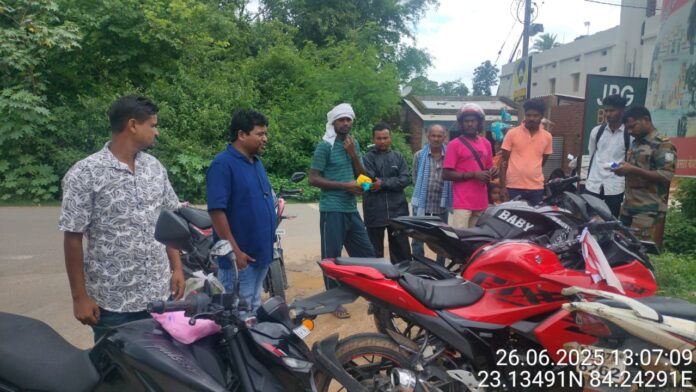 गुमला : उपायुक्त प्रेरणा दीक्षित एवं पुलिस अधीक्षक हरीश बिन ज़मां के निर्देशानुसार आज गुरुवार को चैनपुर चौक पर सड़क सुरक्षा जागरूकता अभियान के तहत मोटरसाइकिल चालकों की जांच एवं मार्गदर्शन अभियान चलाया गया। इस दौरान मोटरयान निरीक्षक रॉबिन अजय सिंह के नेतृत्व में एवं सड़क सुरक्षा प्रबंधक कुमार प्रभाष के सहयोग से दोपहर 12:30 बजे से 01:30 बजे तक विशेष वाहन जांच अभियान चलाया गया।