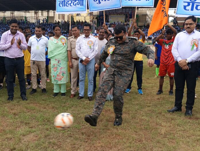 गुमला :- जिला मुख्यालय स्थित संत इग्नेसियस उच्च विद्यालय, गुमला के जुबली स्टेडियम में दक्षिणी छोटानागपुर प्रमंडल स्तरीय सुब्रतो मुखर्जी फुटबॉल कप प्रतियोगिता का शुभारंभ पुलिस कप्तान गुमला हरीश बिन जामां के नेतृत्व में संपन्न हुआ। इस अवसर पर उप विकास आयुक्त दिलेश्वर महतो, अपर समाहर्ता, अनुमंडल पुलिस पदाधिकारी, जिला परिषद उपाध्यक्ष सहित अन्य पदाधिकारी एवं गणमान्य अतिथि उपस्थित रहे।