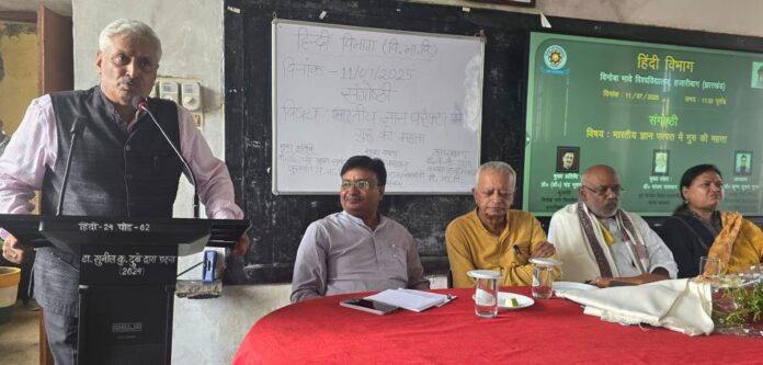 राजनीति विज्ञान विभाग के पूर्व अध्यक्ष डॉ. के.पी. शर्मा ने कहा कि भारतीय शिक्षण प्रणाली का मूल उद्देश्य वैज्ञानिक नहीं बल्कि नैतिक एवं मानवीय व्यक्तित्व निर्माण रहा है।