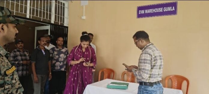 गुमला :ः गुमला जिला मुख्यालय स्थित चंदाली के ईवीएम वेयर हाउस का निरीक्षण जिला निर्वाचन पदाधिकारी सह उपायुक्त प्रेरणा दीक्षित ने किया।