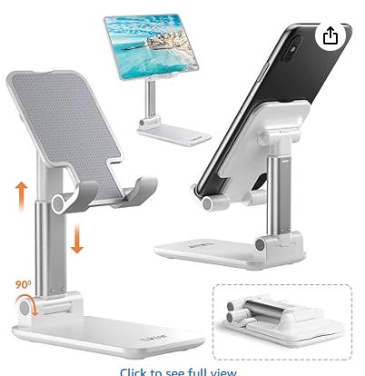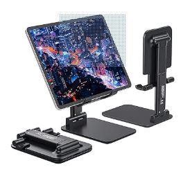 Tukzer Fully Foldable Tabletop Desktop Tablet Mobile Stand Holder - Angle & Height Adjustable for Desk, Cradle, Dock, Compatible with Smartphones & Tablets (White)