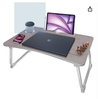 ZEBRONICS DOW Y2, Foldable Laptop Table, Cup Holder, Tablet | Pen | Mobile - Holder, Sturdy Legs, Anti Slip Feet, Table for Study | Work | Craft (Cement Grey)