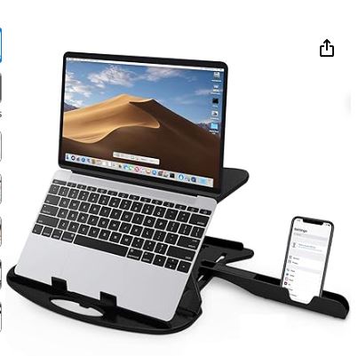 STRIFF Adjustable Laptop Tabletop Stand Patented Riser Ventilated Portable Foldable Compatible with MacBook Notebook Tablet Tray Desk Table Book with Free Phone Stand (Black)
