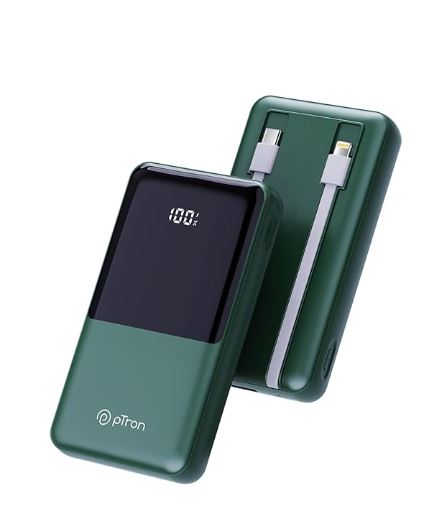 pTron Dynamo Power 20000mAh 22.5W Super Fast Charging, USB Type-C Input Power Bank with Quick Charge & 20W Power Delivery, Built-in Charging Cables, 4 Outputs, Type-C Input/Output Port (Green)