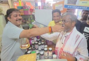 इस क्रम में प्रदीप सेल्स के निदेशक प्रदीप अग्रवाल सहित कई मिठाई दुकानदारों, कपड़ा एवं किराना, इलेक्ट्रिक दुकानों के मालिकों ने पदयात्रा के दौरान लोगों को मुंह मीठा करवाया एवं पीएम मोदी का आभार जताया।