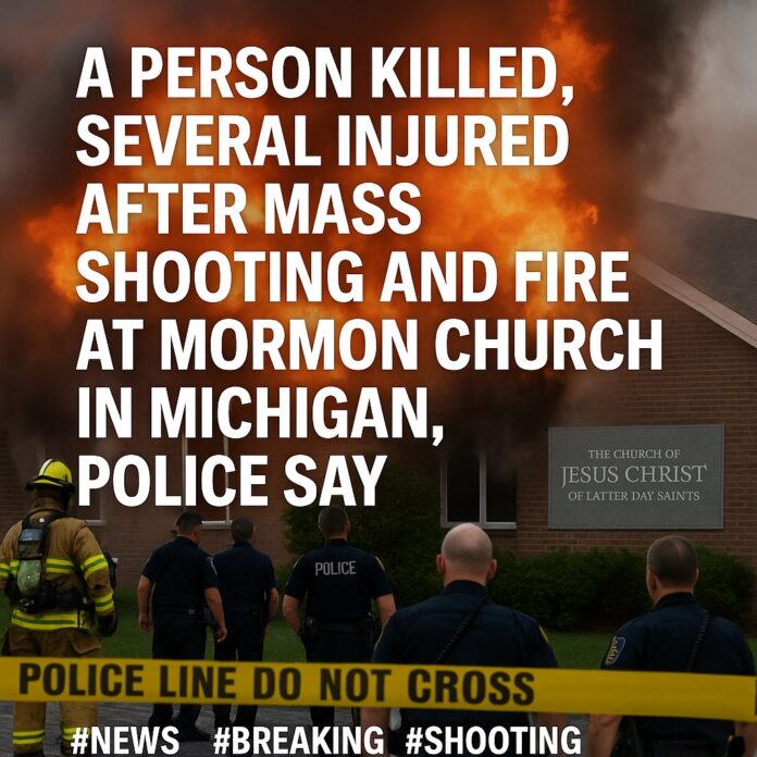 GRAND BLANC TOWNSHIP, Mich. — A mass shooting and fire at a Mormon church in Michigan on Sunday morning left at least one worshipper dead and several others wounded, authorities announced, as emergency crews continued to sift through the wreckage for additional victims.