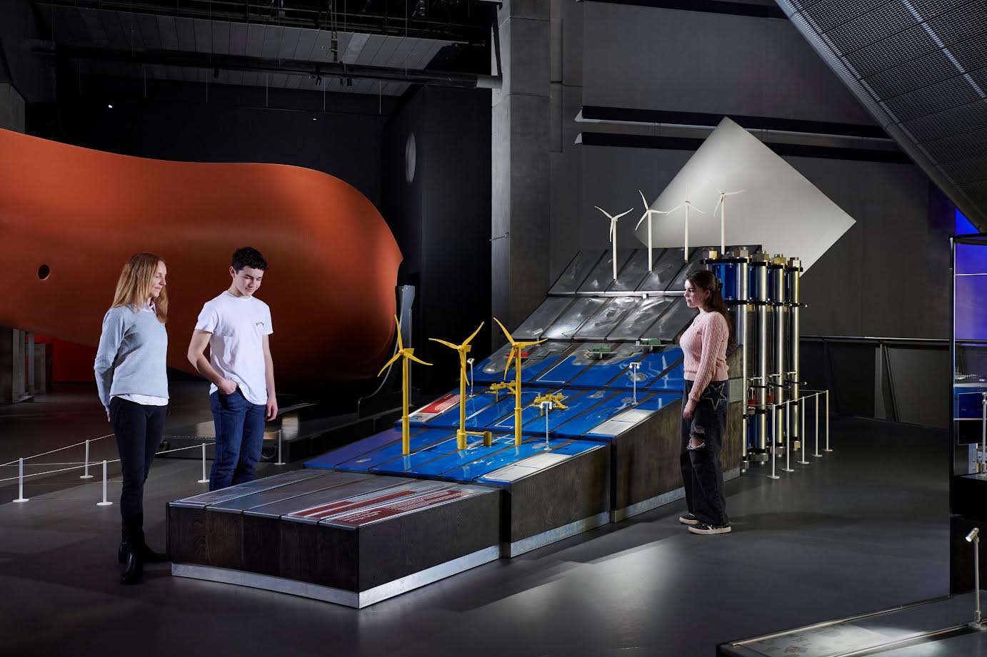 फ्यूचर एनर्जी: दुनिया को फॉसिल फ्यूल्स से दूर ले जाने वाली लो-कार्बन तकनीकें प्रदर्शित — 1897 की पहली इलेक्ट्रिक टैक्सी, 1882 का बिजली नेटवर्क, पाँच मीटर ऊँचा सोलर ट्रफ मिरर, 7 मीटर टाइडल टर्बाइन ब्लेड और स्मॉल मॉड्यूलर न्यूक्लियर रिएक्टर का मॉडल शामिल।