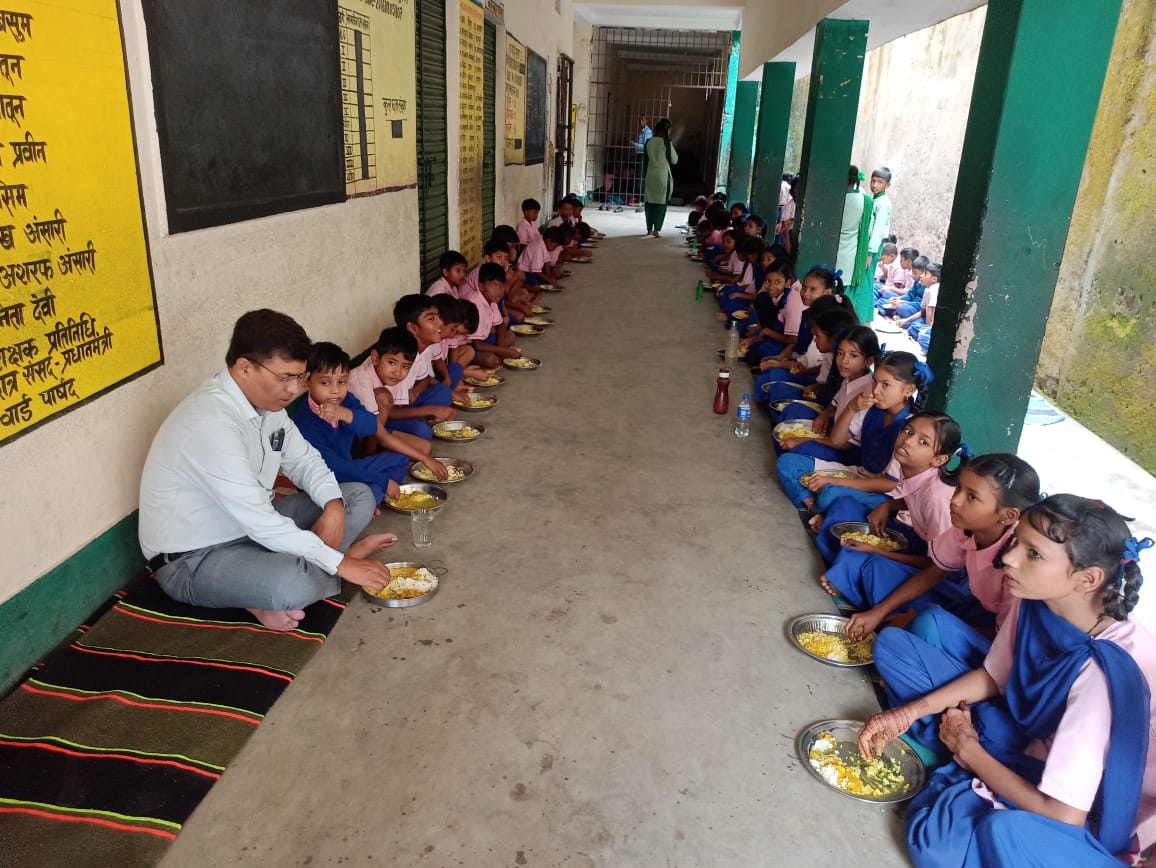 बच्चों ने उत्साह व्यक्त करते हुए कहा— “सर हमारे साथ भोजन किए, बहुत अच्छा लगा।”