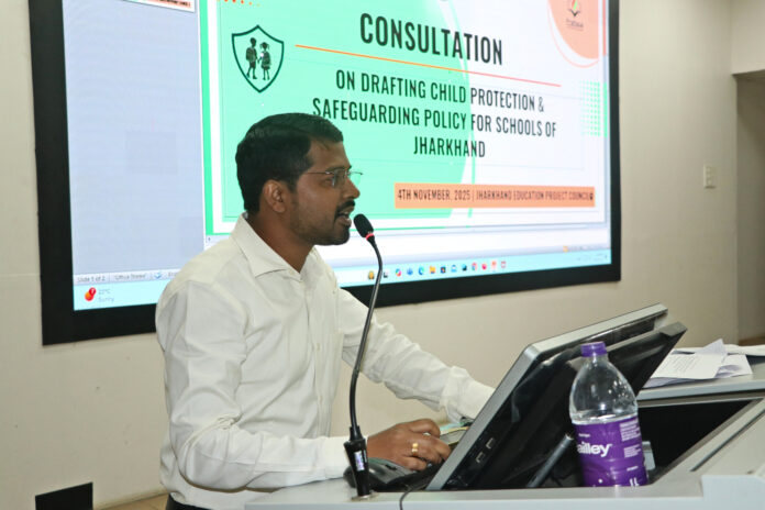 झारखंड के सभी स्कूलों में बच्चो को एक सुरक्षित, समावेशी और शोषण-मुक्त वातावरण में शिक्षा प्रदान करने, और बच्चो के प्रति किसी भी प्रकार के शारीरिक, भावनात्मक, यौन, मौखिक या साइबर नुकसान के लिए शून्य सहनशीलता (zero tolerance) का वातावरण तैयार करने के उद्देश्य से झारखंड के स्कूली शिक्षा एवं साक्षरता विभाग द्वारा विभिन्न गैर सरकारी सामाजिक संगठनो के सहयोग से बाल संरक्षण और सुरक्षा नीति का ड्राफ्ट तैयार किया जा रहा है। सब कुछ सही रहा, तो आने वाले दो माह के अंदर यह ड्राफ्ट तैयार भी हो जाएगा। आज झारखंड शिक्षा परियोजना परिषद द्वारा बाल संरक्षण और सुरक्षा नीति पर एक दिवसीय परामर्श सत्र का आयोजन किया गया। इस सत्र में झारखंड शिक्षा परियोजना निदेशक श्री शशि रंजन, राज्य कार्यक्रम पदाधिकारी डॉ. अविनव कुमार, प्रतिज्ञा फाउंडेशन से श्री अजय कुमार, यूनिसेफ से श्रीमती प्रीती श्रीवास्तव, चेंज इंक फाउंडेशन से श्रीमती गोपिका और श्रीमती स्मृति, बाल अधिकार कार्यकर्ता श्री पीजूष सेन गुप्ता समेत विभिन्न गैर सरकारी/सामाजिक संगठनो के प्रतिनिधि शामिल हुए।