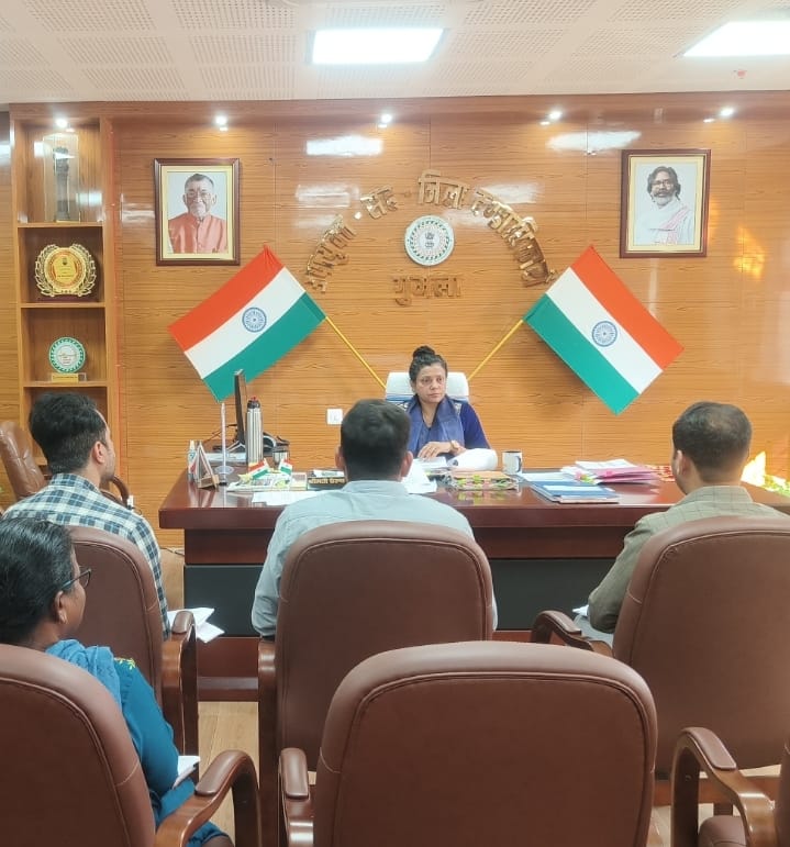 गुमला : गुमला उपायुक्त प्रेरणा दीक्षित की अध्यक्षता में आज नगर परिषद गुमला की समीक्षात्मक बैठक आयोजित की गई। बैठक में शहर की स्वच्छता, व्यवस्था, फॉगिंग, प्लास्टिक नियंत्रण और अवैध निर्माण की स्थिति पर विस्तार से समीक्षा की गई।