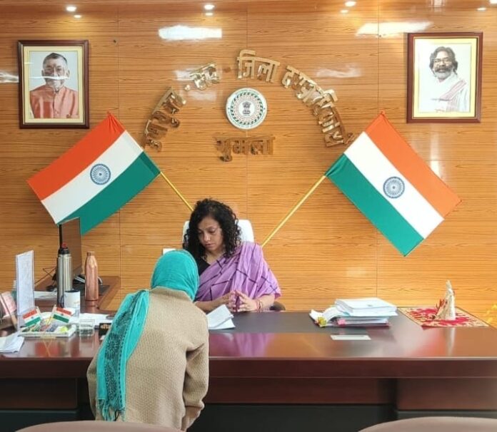 गुमला: गुमला जिला मुख्यालय स्थित समाहरणालय, गुमला चांदली में उपायुक्त प्रेरणा दीक्षित की अध्यक्षता में साप्ताहिक जन शिकायत निवारण दिवस का आयोजन किया गया। इस दौरान जिले के विभिन्न दूरदराज क्षेत्रों से आए 50 से अधिक नागरिकों ने उपायुक्त से प्रत्यक्ष मुलाकात कर अपनी समस्याएँ और शिकायतें दर्ज कराईं। उपायुक्त ने सभी आवेदनों को गंभीरता से सुनते हुए संबंधित विभागीय अधिकारियों को आवश्यक कार्रवाई हेतु निर्देश दिए।