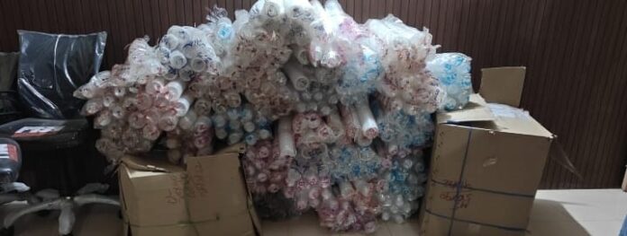 गुमला : – गुमला उपायुक्त प्रेरणा दीक्षित के निर्देश के आलोक में नगर परिषद गुमला की स्वच्छता एवं प्रवर्तन टीम ने आज विशेष जांच अभियान चलाते हुए बाजार क्षेत्र में बड़ी कार्रवाई की। अभियान के दौरान टीम ने दुकानों एवं गोदामों की तलाशी में कुल 1,33 बंडल प्रतिबंधित प्लास्टिक जब्त किए एवं 2,000 रुपये का आर्थिक दंड भी वसूला गया।
