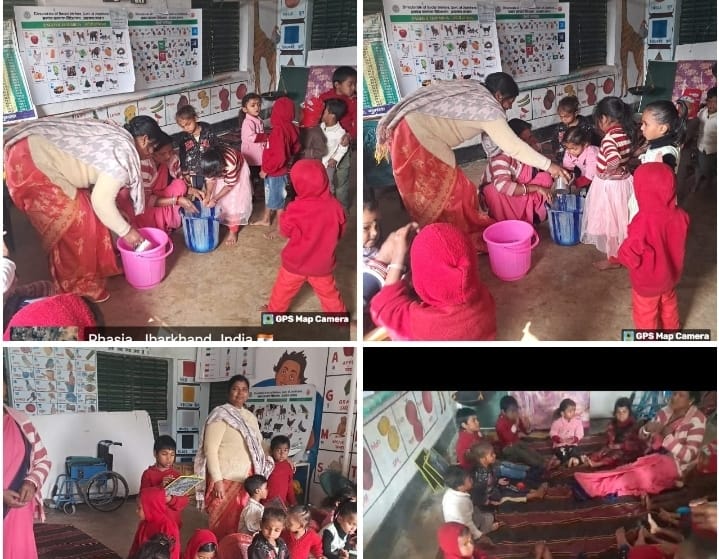 आज भी जिला समाज कल्याण पदाधिकारी (DSWO) आरती कुमारी , एलएस एवं सीडीपीओ द्वारा विभिन्न आंगनबाड़ी केंद्रों का भ्रमण कर बच्चों की साफ-सफाई, रसोई व्यवस्था और सीखने के माहौल का जायजा लिया गया। निरीक्षण के दौरान बच्चों की व्यक्तिगत स्वच्छता पर विशेष ध्यान दिया गया, उनके नाखून काटे गए, बालों की साफ-सफाई कराई गई और अभिभावकों को बच्चों की देखभाल को लेकर संवेदनशील बनाया गया।