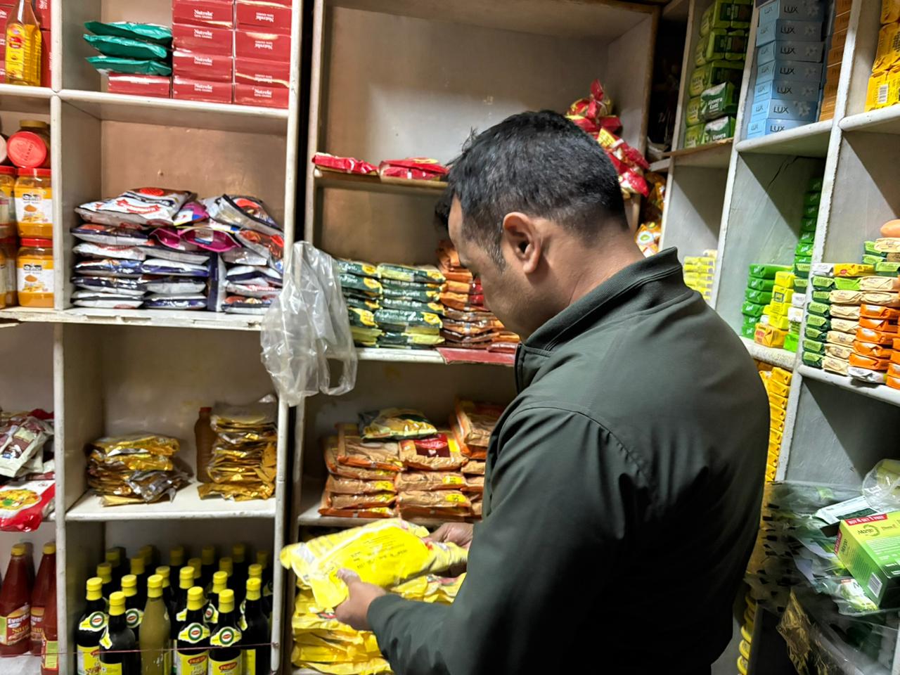 निरीक्षण के दौरान यह भी पाया गया कि कुछ खाद्य प्रतिष्ठानों द्वारा बेसन के नाम पर “प्रकाश” ब्रांड का मटर बेसन बिक्री हेतु रखा गया था, जिस पर निर्माण तिथि, समाप्ति तिथि, एफएसएसएआई लोगो एवं वैध लाइसेंस नंबर अंकित नहीं थे। उक्त सामग्री को अमानक एवं संदेहास्पद मानते हुए मौके पर ही तत्काल नष्ट कराया गया तथा संबंधित दुकानदारों को सख्त हिदायत दी गई कि भविष्य में इस प्रकार की सामग्री की खरीद, बिक्री अथवा भंडारण नहीं किया जाए। साथ ही यह भी चेतावनी दी गई कि पुनः ऐसी अनियमितता पाए जाने पर कानूनी कार्रवाई की जाएगी।