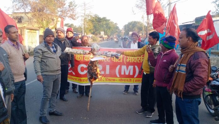 भारत की कम्युनिस्ट पार्टी (मार्क्सवादी) गोमिया प्रखंड कमेटी के नेतृत्व में अमेरिका के राष्ट्रपति डोनाल्ड ट्रंप का पुतला दहन स्वांग गोमिया अवस्थित पार्टी कार्यालय के समीप किया गया। पुतला दहन के पूर्व उपस्थित पार्टी के नेता व कार्यकर्ताओं ने डोनाल्ड ट्रंप मुर्दाबाद, अमेरिकी राष्ट्रपति डोनाल्ड ट्रंप होश में आओ, वेनेजुएला के राष्ट्रपति निकोलस मादुरो को उनकी पत्नी के साथ बिना शर्त रिहा करो, डोनाल्ड ट्रंप तुम्हारी तानाशाही नहीं चलेगी आदि नारे लगाए। पुतला दहन के बाद उपस्थित माकपा के राज्य कमेटी सदस्य रामचंद्र ठाकुर, प्रदीप कुमार विश्वास एवं गोमिया प्रखंड सचिव राकेश कुमार ने संयुक्त रूप से कहा अमेरिका के द्वारा तेल एवं अन्य संसाधनों पर कब्जा करने के उद्देश्य व नीयत से दूसरे देशों पर तानाशाही हमले किए जा रहे हैं जिसका ताजा उदाहरण वेनेजुएला के राष्ट्रपति निकोलस मादुरो को गिरफ्तार करना एवं वहां पर हमला करना है। उन्होंने कहा हमारी पार्टी वेनेजुएला के राष्ट्रपति को गिरफ्तार करने की घटना की निंदा करती है और अमेरिका के राष्ट्रपति डोनाल्ड ट्रंप को कडा संदेश देती है कि वह निकोलस मादुरो को बिना शर्त उनकी पत्नी के साथ रहा करें।