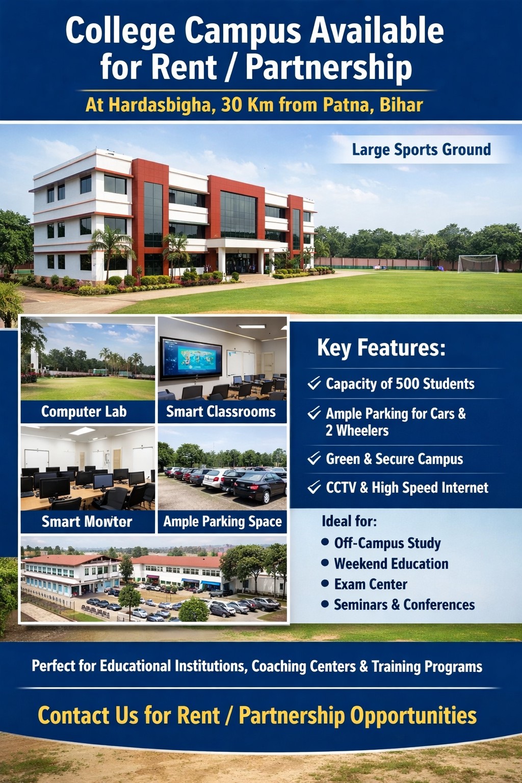 Educational institutions, universities, coaching centers, and training organizations are invited to explore rental or long-term partnership opportunities.