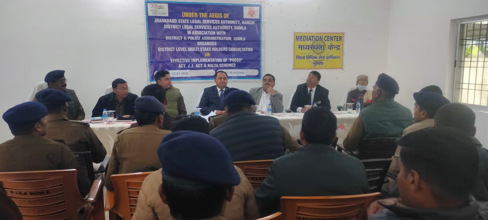 गुमला ः गुमला में झारखंड राज्य विधिक सेवा प्राधिकरण (JHALSA), रांची के आदेशानुसार तथा प्रधान जिला एवं सत्र न्यायाधीश-सह-अध्यक्ष, जिला विधिक सेवा प्राधिकरण, गुमला ध्रुव चंद्र मिश्रा के निर्देश पर आज डीएलएसए, गुमला के सभागार में पोक्सो अधिनियम के विषय पर मल्टी-स्टेकहोल्डर कंसल्टेशन सह कार्यशाला का आयोजन किया गया। कार्यशाला का उद्घाटन प्रधान जिला एवं सत्र न्यायाधीश ध्रुव चंद्र मिश्रा द्वारा दीप प्रज्वलित कर किया गया।
