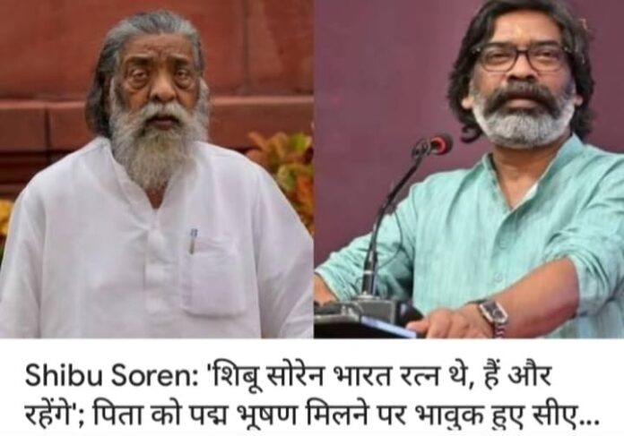 इस वर्ष पद्मभूषण पुरस्कार के लिए अपने जीवन के बहुमूल्य पांच दशक तक झारखंडी अस्मिता के लिए निरन्तर संघर्षरत रहे. झारखंड मुक्ति मोर्चा के संस्थापक,पृथक राज्य आंदोलन के अगुआ झारखंड के दिशोमगुरु शिबू सोरेन को भी मरणोपरांत दिये जाने की घोषणा हुई है. झारखंडियों को लगा था कि शिबू सोरेन को भारत रत्न जैसे सर्वोच्च सम्मान ने नवाजा जाएगा, लेकिन लोगों को निराशा हाथ लगी.