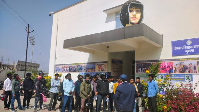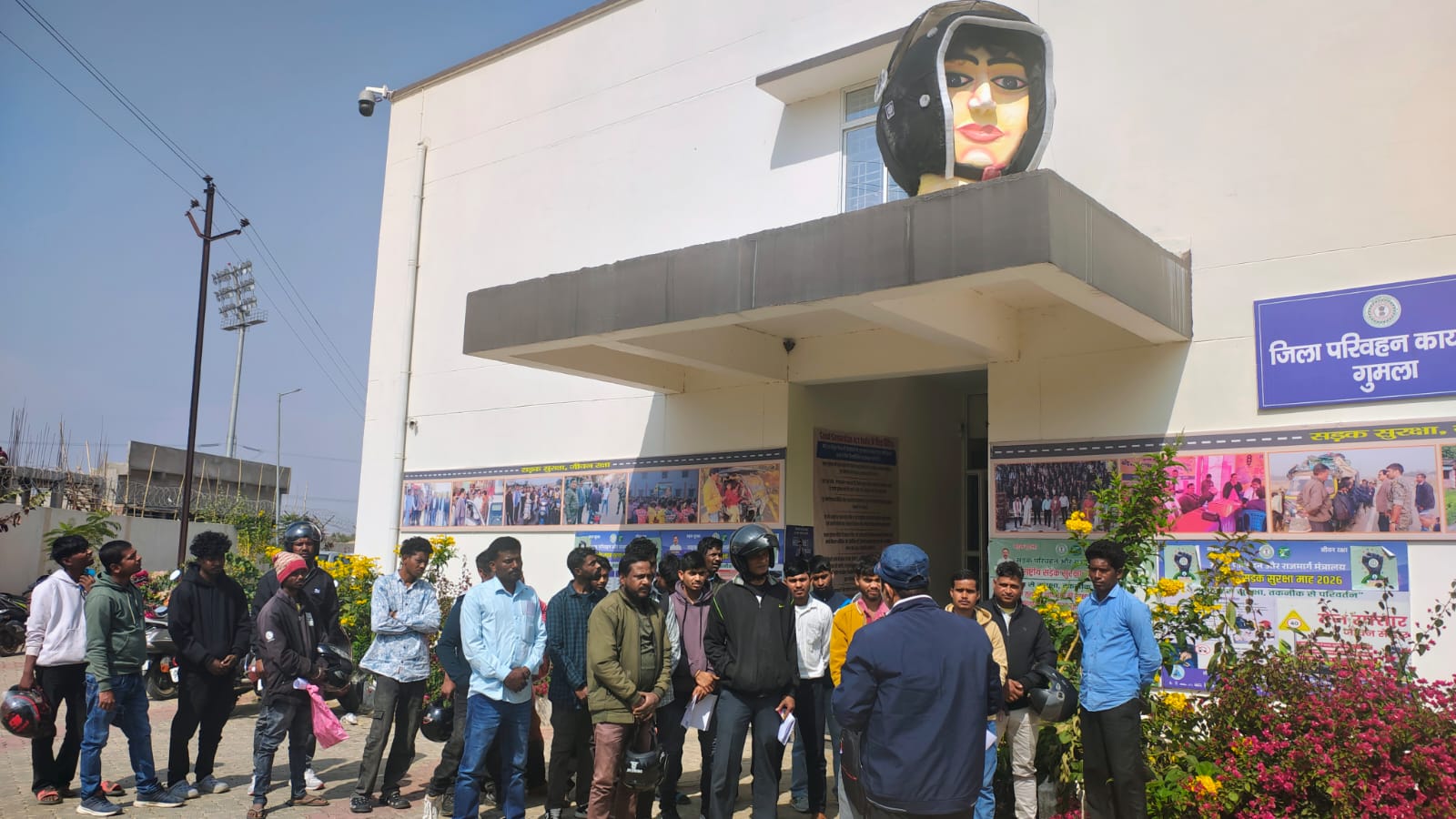 गुमला : – गुमला जिला मुख्यालय में (02 फरवरी 2026 ) सड़क दुर्घटनाओं में कमी लाने और आम जनमानस में यातायात नियमों के प्रति जागरूकता फैलाने के उद्देश्य से आज गुमला जिले में एक विशेष अभियान चलाया गया। जिला परिवहन पदाधिकारी (DTO) ज्ञान शंकर जायसवाल के निर्देशानुसार, जिले के विभिन्न थानों द्वारा सघन वाहन जाँच अभियान चलाया गया, जिसमें मुख्य रूप से बिना हेलमेट मोटरसाइकिल चलाने वालों पर सख्ती बरती गई।