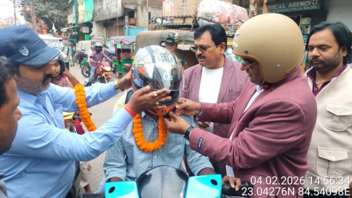 पटेल चौक पर हुआ हेलमेट वितरण