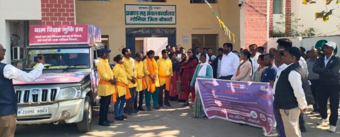 गोमिया। बाल विवाह जैसी सामाजिक कुप्रथा के खिलाफ जन-जागरूकता फैलाने के उद्देश्य से प्रखंड सह अंचल कार्यालय गोमिया परिसर में बाल विवाह मुक्त जागरूकता रथ का स्वागत किया गया। इस अवसर पर नुक्कड़ नाटक का आयोजन कर लोगों को बाल विवाह के दुष्परिणामों से अवगत कराया गया।