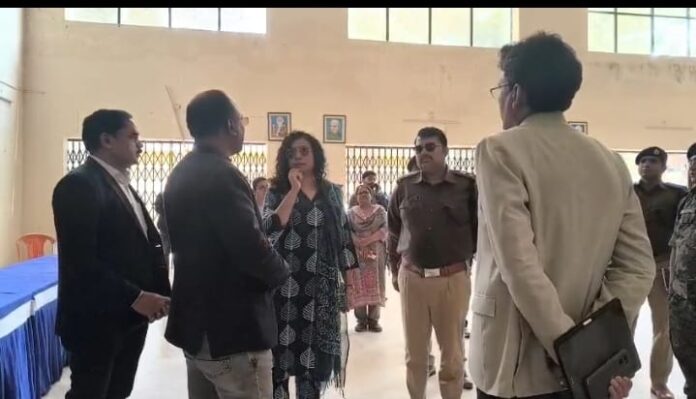 गुमला : – गुमला जिला मुख्यालय में नगर पंचायत चुनाव के सफल और निष्पक्ष संचालन को लेकर जिला निर्वाचन पदाधिकारी सह उपायुक्त प्रेरणा दीक्षित और पुलिस अधीक्षक हरिश बिन ज़मां ने शनिवार को के. ओ . कॉलेज भवन गुमला में बन रहे वज्र गृह, रिसीविंग सेंटर और प्रस्तावित मतगणना केंद्र का संयुक्त रूप से स्थलीय निरीक्षण किया. उन्होंने निर्वाचन की तैयारियों की समीक्षा की.