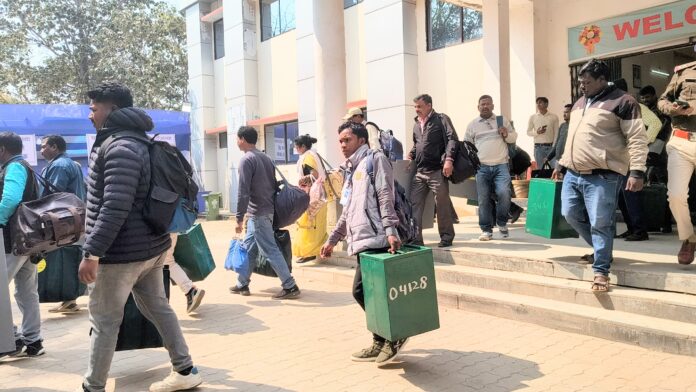 गुमला : – गुमला जिला मुख्यालय के नगर पालिका क्षेत्र में नगर निकाय आम चुनाव को लेकर प्रशासनिक तैयारियां अब अंतिम चरण में पहुंच चुकी हैं. रविवार को, के o ओ o कॉलेज से पोलिंग पार्टियां अपने-अपने निर्धारित बूथों के लिए रवाना हो गई. पूरे परिसर में सुबह से ही हलचल देखने को मिली, जहां मतदान कर्मियों को सुव्यवस्थित ढंग से उनके गंतव्य तक भेजने की प्रक्रिया पूरी की गई.