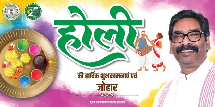होली के पावन अवसर पर मुख्यमंत्री हेमन्त सोरेन ने दी राज्यवासियों को शुभकामनाएँ