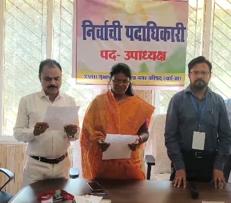 गुमला : – गुमला नगर परिषद, गुमला (वर्ग–ख) की नवनिर्वाचित अध्यक्ष शकुन्तला उरांव एवं सभी 22 वार्ड पार्षदों का शपथ ग्रहण समारोह शनिवार को अनुमण्डल कार्यालय, गुमला स्थित सभागार में संपन्न हुआ। जिला निर्वाचन पदाधिकारी सह उपायुक्त प्रेरणा दीक्षित ने नवनिर्वाचित अध्यक्ष शकुन्तला उरांव एवं सभी वार्ड पार्षदों को पद एवं गोपनीयता की शपथ दिलाई।