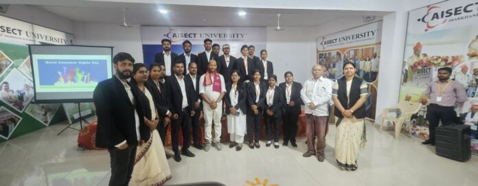 हजारीबाग। आईसेक्ट युनिवर्सिटी के प्रधान कैंपस में ‘वर्ल्ड कंज्यूमर डे’ कार्यक्रम का आयोजन किया गया। इस कार्यक्रम में बतौर मुख्य अतिथि हजारीबाग शहर के महापौर अरविंद कुमार राणा उपस्थित समेत समाजसेवी मनोज कुमार, डॉ रितेश लाल, डॉ विनोद कुमार,डॉ उपाध्याय उपस्थित थे। कार्यक्रम का संचालन लॉ कॉलेज के छात्र सोहेल ने किया। इस कार्यक्रम मे विधि विभाग के असिस्टेंट प्रोफेसर कोमल पल्लवी भेंगरा ने कहा कि